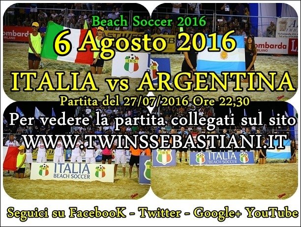 Mercoledì 27 Luglio 2016 Ore 22,30 2° Partita ITALIA - ARGENTINA - 7/5