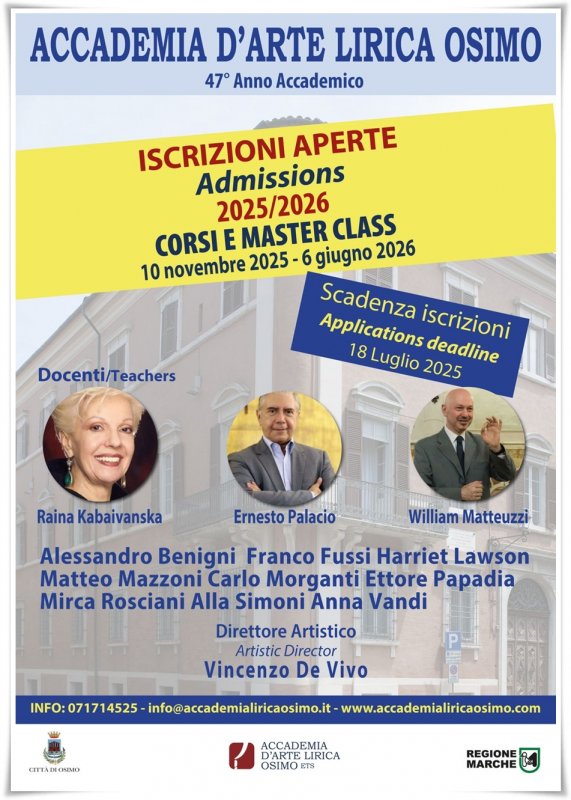 APERTE LE ISCRIZIONI ALL’ACCADEMIA LIRICA DI OSIMO 19.06.2025