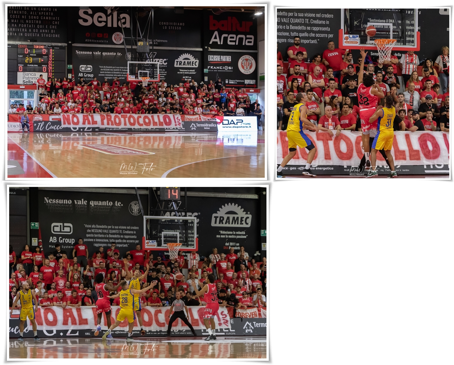 Devoe, Tiberti) e parte con piglio aggressivo: Berdini segna i primi punti del periodo e Tiberti recupera palloni preziosi, mentre Davis conclude in contropiede su assist di Conti per riportare i biancorossi a -3 (40-43). Berdini orchestra bene il gioco, firma anche una stoppata spettacolare e manda Tiberti in lunetta, ma Torino risponde con la tripla del 33 e i canestri di Allen che le consentono di tornare a +8. Cento però non si arrende: Conti si guadagna liberi e segna in transizione, Tanfoglio entra e intercetta, confezionando con il capitano l’assist che porta di nuovo Conti a canestro. Poco dopo arrivano anche i primi punti di Tanfoglio, ma Torino continua a muovere bene la palla, trovando la tripla del 46 e altri canestri che fissano il punteggio sul 48-57 al termine del terzo quarto.