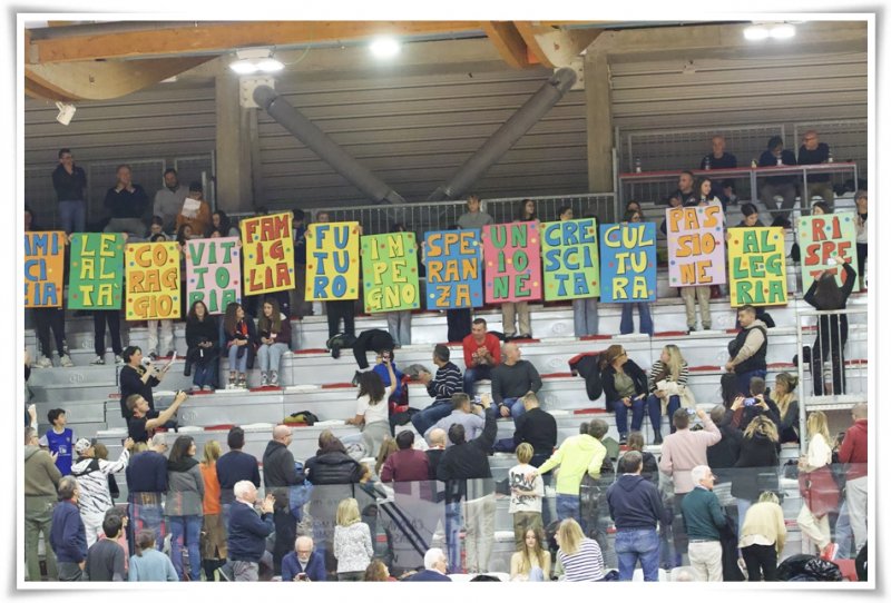 All’intervallo l’IC2 Pascoli, ospite della Benedetto, ha eseguito una coreografia per supportare la squadra in virtù della nuova collaborazione tra la scuola e la società, nell’ottica ormai dichiarata della Benedetto di essere un nodo sociale importante a livello territoriale.