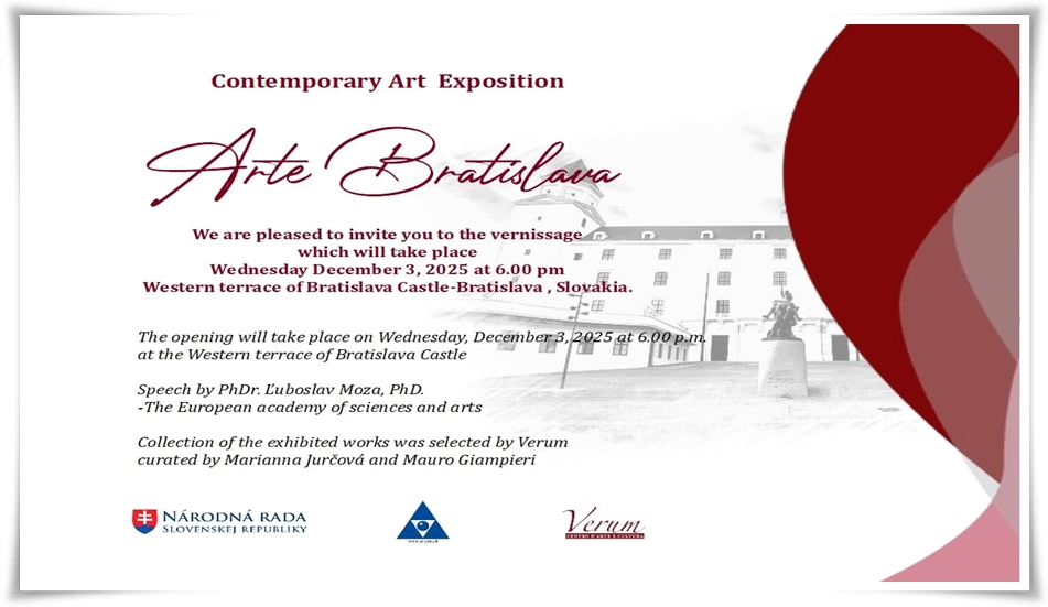 Evento organizzato dal Centro d’ Arte e Cultura VERUM curato dalla prof.ssa Marianna Jurcova e dal curatore Mauro Giampieri, presso le storiche e prestigiose sale del castello di Bratislava con la collaborazione della galleria Artem di Bratislava.