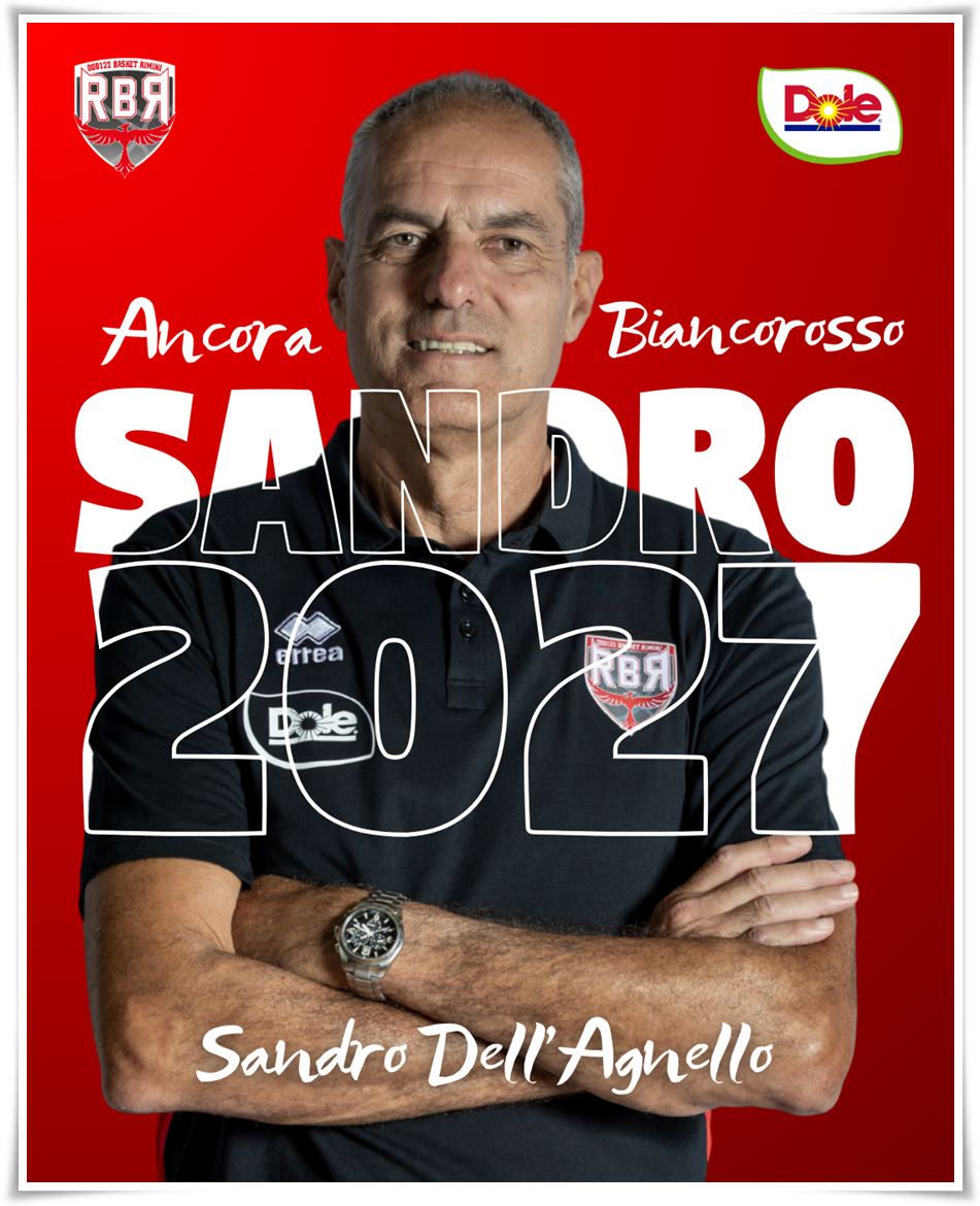 Chiude l’annuncio il Presidente Onorario Giove Boldrini: “Anche io dò un grande nuovo benvenuto a Sandro che ha dimostrato in questi anni di essere un allenatore bravo e capace in grado di portare Rimini a un ottimo livello: ricordiamo che prese la squadra nel momento più difficile nella sua storia di Rinascita e l’anno successivo ha fatto una cavalcata importante, mentre quest’anno a metà campionato siamo già nelle prime posizioni. Il Cda ha deliberato questo rinnovo del contratto all’unanimità sostenendo questa nuova avventura in modo convinto e con grande compattezza, caratteristica fondamentale di questa società sportiva per ottenere ottimi risultati. Tutto ciò, come già detto, è stato deciso quando la situazione era molto meno favorevole, ovvero tra fine ottobre e i primi giorni di novembre, a testimonianza della fiducia che la società ha sempre avuto nel lavoro di Sandro Dell’Agnello”.