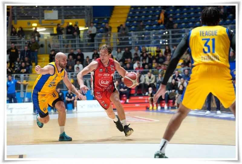 Una tripla di Tortù riporta i piemontesi a -1 (51-52), ma Simioni non sbaglia un colpo: canestro da due più tripla e la Dole è in vantaggio di 6 (51-57). La partita si fa combattuta e si entra al 35’ con Schina che va a infilare la tripla del -2 (55-57), sulla quale coach Dell’Agnello si rifugia in time out. Si torna in campo e Cusin sempre più fattore va a impattare 59-59. Si gioca al cardiopalma: ancora Cusin dalla mattonella 61-59, ma Tomassini dalla parte opposta mette la tripla per il nuovo vantaggio Rimini (61-62). Pesano i dettagli: 1/2 Schina (62-62), ma Tomassini va d’esperienza (62-64). Marini sbaglia entrambi i liberi e a 10” dalla fine Teague va a impattare 64-64. Ma Tomassini è granitico, col suo talento segna la tripla della vittoria a 2 secondi dalla fine (64-67).