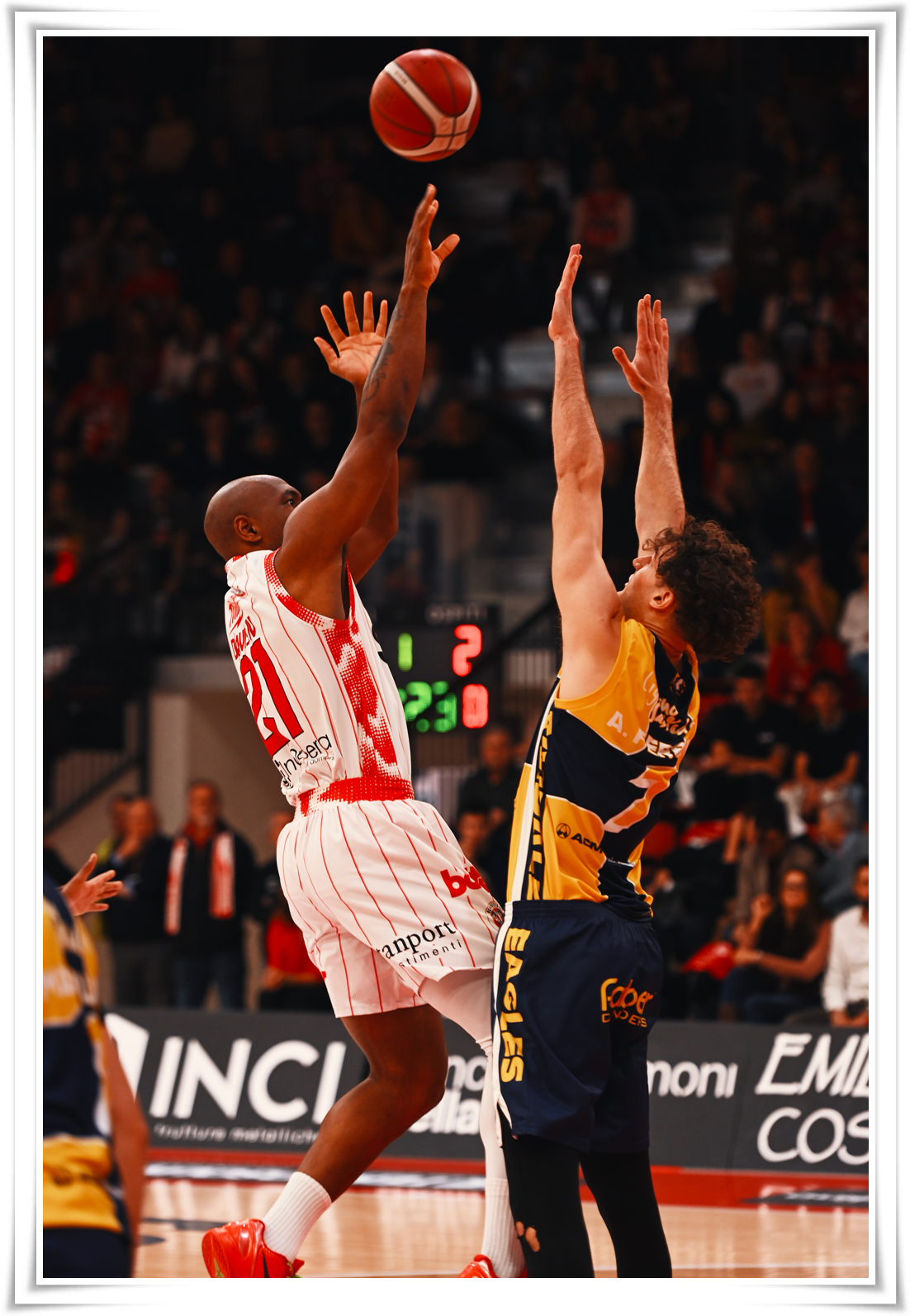 Nella seconda frazione sale il livello di fisicità: la Benedetto prova a rientrare in partita trascinata da capitan Davis e un grande Moretti, possesso dopo possesso, riduce il divario fino al 38-46 dell’intervallo.