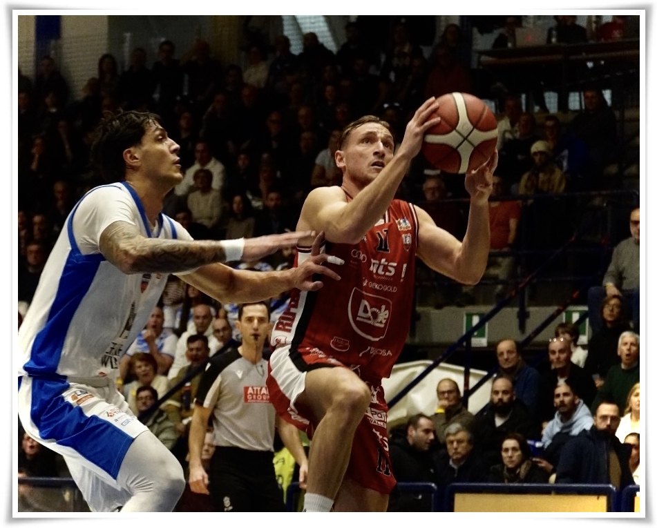 Si riparte con una tripla dall’angolo di Sankare (20-27), poi a salire in cattedra è Denegri: Davide segna il 25-30 e il 27-33. La Dole nella parte centrale del quarto confeziona un break imponente: arriva un 13-0 nel quale pesano due triple in fila di Robinson per il 27-38 e il 27-41 che vale il momentaneo massimo vantaggio sul +14. A completare il dipinto ci pensa poi Camara per il 27-43 del +16. Con un contropiede concretizzato da Pollone la Dole tocca anche il +18 (31-49). Il finale di tempo è però favorevole ai padroni di casa: parziale di 8-0 che avanza fino al 41-50 del 20’. Per Ruvo determinanti nel tentativo di recupero Smith, Brooks e Miccoli. Per coach Dell’Agnello già due uomini in doppia cifra: Denegri 11 e Camara 10. Rbr bene al tiro 12/19 da due e 6/14 da tre.