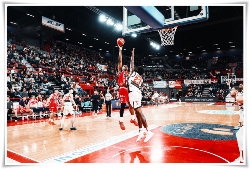 La partita diventa una vera e propria battaglia salvezza, con entrambe le squadre pronte a dare tutto. A 3’ dalla fine Tiberti segna il +2 su assist di Devoe, poi in difesa subisce uno sfondamento da Stephens. Aradori inventa un canestro difficilissimo da dietro al tabellone, ma ancora Tiberti riporta il punteggio in parità a 2’ dalla sirena.