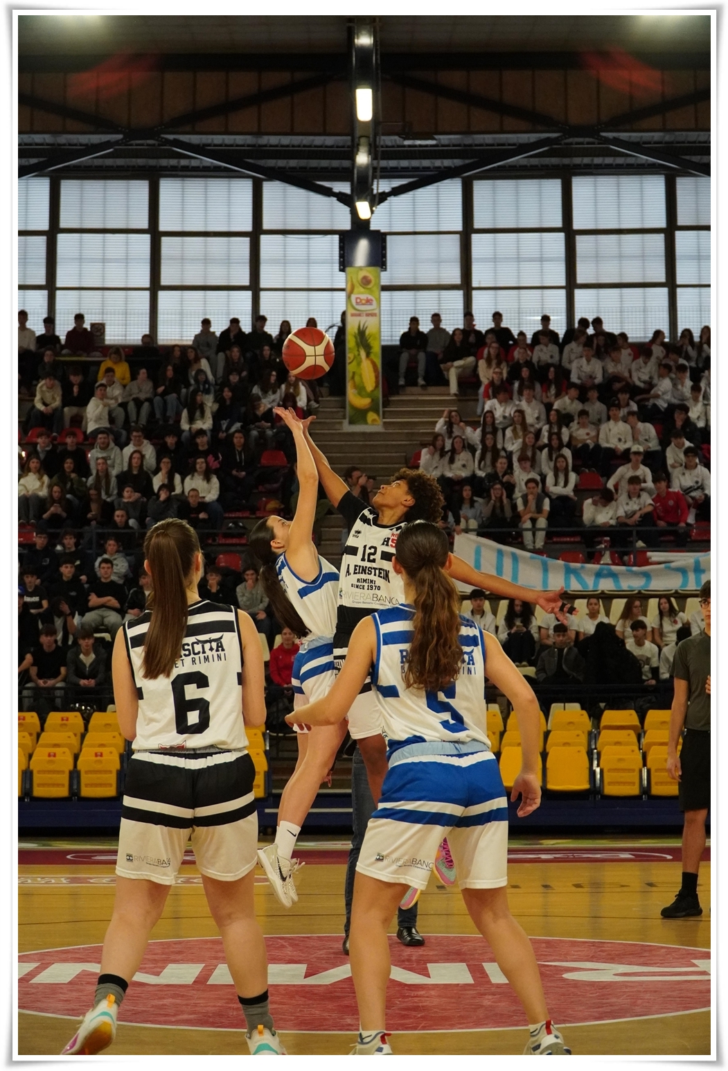 Ancora una volta eccezionale la cornice di pubblico, con oltre 1200 persone sugli spalti del Palasport Flaminio, a cui si sono aggiunti l’assessore allo Sport del Comune di Rimini Michele Lari, la responsabile marketing territoriale di Rivierabanca Lucia Mattei Gentili e l’intera prima squadra della Dole Rimini.