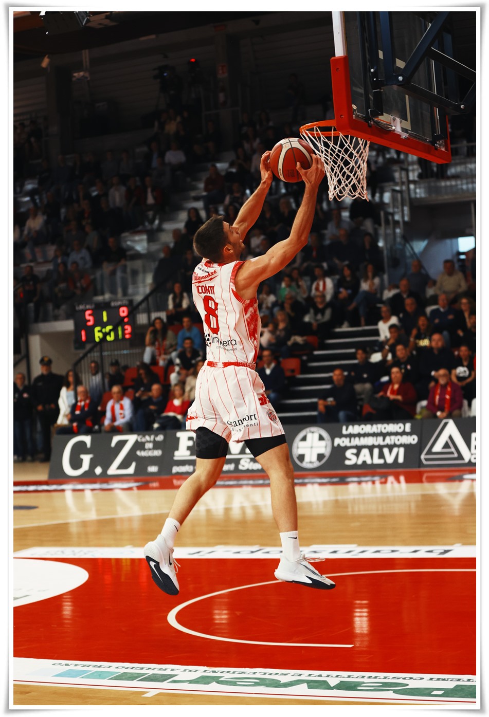 Al ritorno dagli spogliatoi il quarto si apre ancora nel segno dell’equilibrio, con Scafati che prova a partire forte con Allen e con un nuovo strappo firmato da Walker, capace di riportare gli ospiti avanti di qualche possesso. La Sella, però, resta pienamente dentro la gara: Davis continua a garantire punti e presenza offensiva, Montano trova un canestro coraggioso nel traffico e Conti, recuperando palla e andando fino in fondo, avvicina ancora i biancorossi.