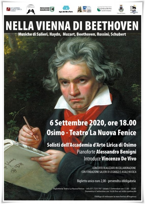 “Nella Vienna di Beethoven” è il titolo del concerto che i solisti dell’Accademia d’Arte Lirica propongono domenica 6 Settembre alle ore 18.00 al Teatro “La Nuova Fenice” di Osimo. La manifestazione, realizzata in collaborazione con la Fondazione Salieri di Legnago e Asolo Musica, rientra nell’ambito del progetto “Oltre l’Ascolto”, che pone l’attenzione sul rapporto tra cultura musicale e disabilità e sulle sue potenzialità con finalità di formazione, inclusione e sensibilizzazione.