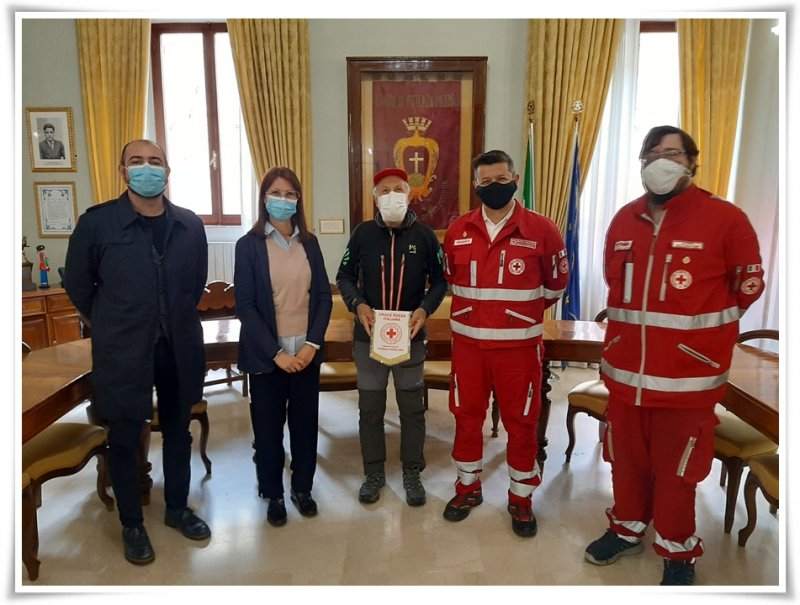 Una motivazione straordinaria sostenuta dalla Fede e da quella che è diventata la sua missione di vita: sensibilizzare e far conoscere ad un numero maggiore possibile di persone la Sclerosi Tuberosa e più in generale porre l’attenzione sulle malattie rare, la cui ricerca è troppo spesso insufficiente, se non assente, poiché considerate antieconomiche dalle grandi case farmaceutiche. Elio Brusamento, 69 anni di Padova, infermiere in pensione, alpino ed atleta, sta compiendo un’impresa straordinaria: è partito il 25 aprile 2019 da Trieste per percorrere l’Italia a piedi e scoprire i borghi e i paesi meno noti, con solamente uno zaino in spalla: «per essere libero prima di partire ho venduto tutto quello che avevo». Si è proposto di farsi portavoce dell’Associazione Sclerosi Tuberosa al fine di far conoscere questa patologia durante il suo percorso. Dopo quasi 7 mila chilometri, dalle Alpi alla Sicilia, sta risalendo la dorsale Adriatica ed è giunto a Potenza Picena dove, tramite il Presidente della locale Croce Rossa Matteo Carlocchia, è stato ricevuto in Municipio dal Sindaco Noemi Tartabini e dall’Assessore Paolo Scocco. “E’ stato un grande onore poter conoscere il Signor Brusamento – ha riferito il Sindaco Tartabini – abbiamo ascoltato ed imparato molto dalla sua storia, raccontata con parole semplici ma ricche di umanità. Un esempio per tutti noi ed un messaggio che dobbiamo accogliere con il cuore.” Da Potenza Picena, zaino in spalla, il Signor Elio si è incamminato verso Loreto. Lunedì sarà ad Ancona dove verrà ricevuto in Regione dal Presidente Francesco Acquaroli.