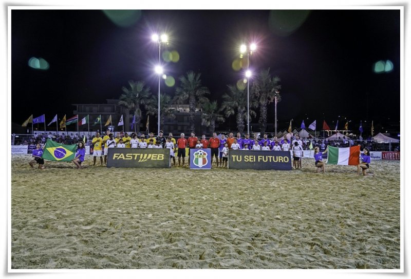 È dell’Italia la dodicesima edizione del Mundial Beach Soccer Trofeo Femblu – Linea Oro. La tappa di Porto Sant’Elpidio dell’Italia Beach Soccer di Maurizio Iorio non ha tradito le attese ed ha riservato uno spettacolo e partite di livello al numeroso pubblico che riempito le tribune dell’arena e l’area del villaggio dove era posizionato il maxi schermo. Molto bella la finale tra Italia e Brasile con i carioca che hanno iniziato con grandi ritmi e giocate importanti gli azzurri passando subito in vantaggio con Jeda, vecchia conoscenza del calcio italiano. Giorgio La Vista di testa ha subito pareggiato, ma i verdeoro hanno subito rimesso il naso avanti con Bahia. Ha sofferto la squadra azzurra prima di prendere con decisione le redini in mano. Ganci per il pareggio e Di Michele per il sorpasso, straordinario il secondo gol con tiro all’incrocio. Poi ancora La Vista, Zingrillo e ancora Di Michele per il trionfo azzurro. Terminata la finale le canoniche premizioni hanno visto interessati Ismail Boutimah del Marocco come miglior giovane. Miglior portiere è stato Antonio Chimenti, miglior giocatore Jeda del Brasile infine il capocannoniere è stato Nasser Boucenna della Francia.