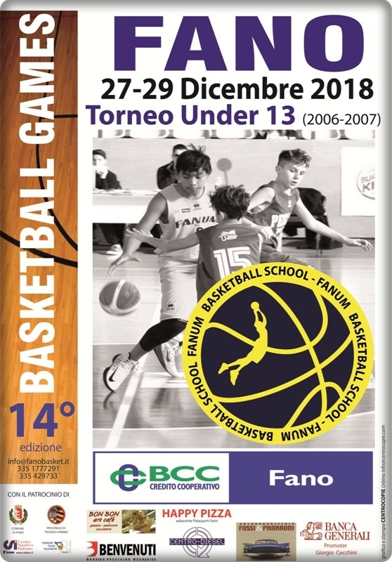 Basketball School Fanum, ha organizzato per i giorni 27, 28 e 29 Dicembre 2018 un torneo di Basket valevole per la categoria Under 13 (Anno 2006/2007)
