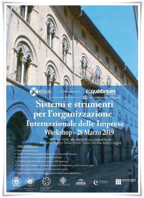 Workshop - 28 Marzo 2019 dalle ore 15:00 alle ore 19:00 con cocktail finale, Ancona Teatro Delle Muse - Sala Clio Via della Loggia.