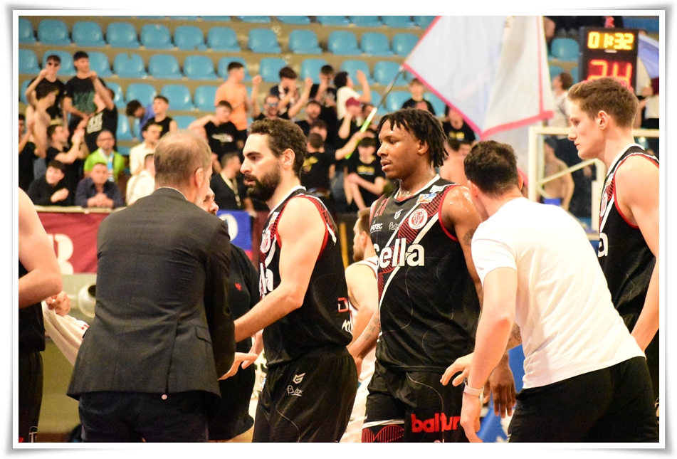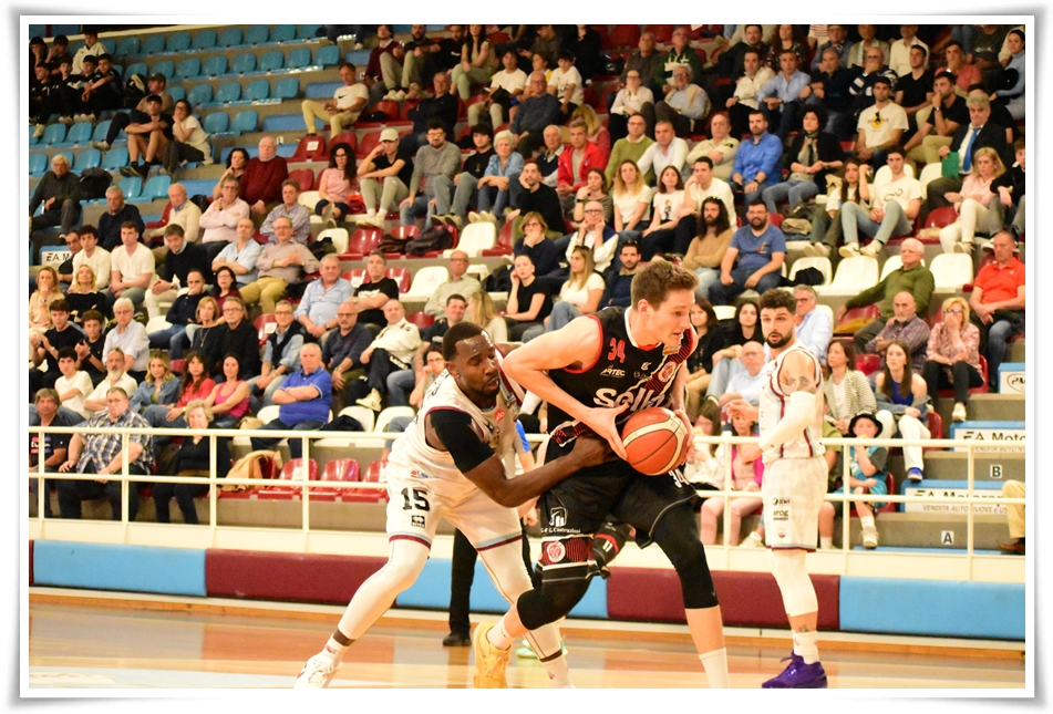 Parte forte la Sella Cento nel secondo quarto che lascia per più di 4 minuti i padroni di casa a digiuno in attacco, a sbloccare Rieti è infatti Ancellotti, dopo un avvio ottimo di Musso, che arriva in doppia cifra con un 3/3 dalla lunga distanza. Rieti rimane sempre in gara grazie a Nobile e poi il suo capitano che insieme realizzano due triple importanti. Negli ultimi 4 minuti del secondo quarto è Mattia Palumbo a trascinare i biancorossi, andando in lunetta e lottando sotto canestro. Negli ultimi due minuti il playmaker centese lascia il testimone all’esperienza di Archie che si porta anche lui in doppia cifra, portando la Sella Cento sul +12, distanza che viene poi ridotta da un canestro che rivedremo spesso nei prossimi giorni di Davide Raucci. Un tiro da oltre metà campo, sulla sirena che valgono i 3 punti, dopo una breve indecisione degli arbitri in seguito alle proteste di Coach Mecacci.