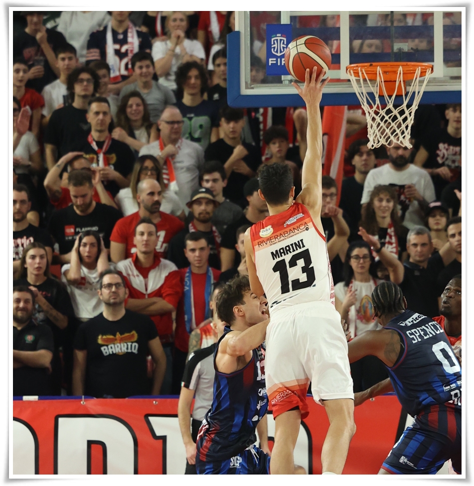 RIVIERABANCA: Anumba 12, Grande 11, Tomassini 4, Masciadri 8, Marini 26, Bedetti, Amaroli, Bonfè, Robinson 14, Johnson, Simioni 8, Camara 8. All.: Dell’Agnello.
