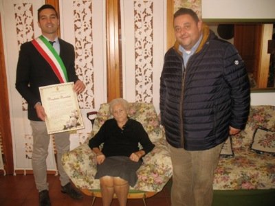 Con la signora Margherita Marzialetti salgono a nove i potentini che, nell’anno in corso, hanno tagliato l’invidiabile traguardo del secolo di vita. Una vita spesa per il lavoro e per la famiglia che a Potenza Picena gestisce “il molino di via Piana”. La signora Margherita da qualche tempo vive con la figlia Fernanda e con il genero Costantino Marzetti. Nel giorno del centesimo compleanno hanno voluto festeggiarla, andando a trovarla a casa, il Sindaco Francesco Acquaroli e il Presidente del Consiglio Comunale Mirco Braconi, i quali hanno portato gli auguri della Giunta e dell’intero Consiglio. Nell’occasione il primo cittadino ha consegnato alla signora Margherita una pergamena personalizzata realizzata dall’artista Giusi Riccobelli. “Un traguardo – ha sottolineato il Sindaco – il cui merito va condiviso con le famiglie che, spesso con difficoltà oggettive, accudiscono amorevolmente in casa i propri cari”. Michele Emili Servizio Stampa