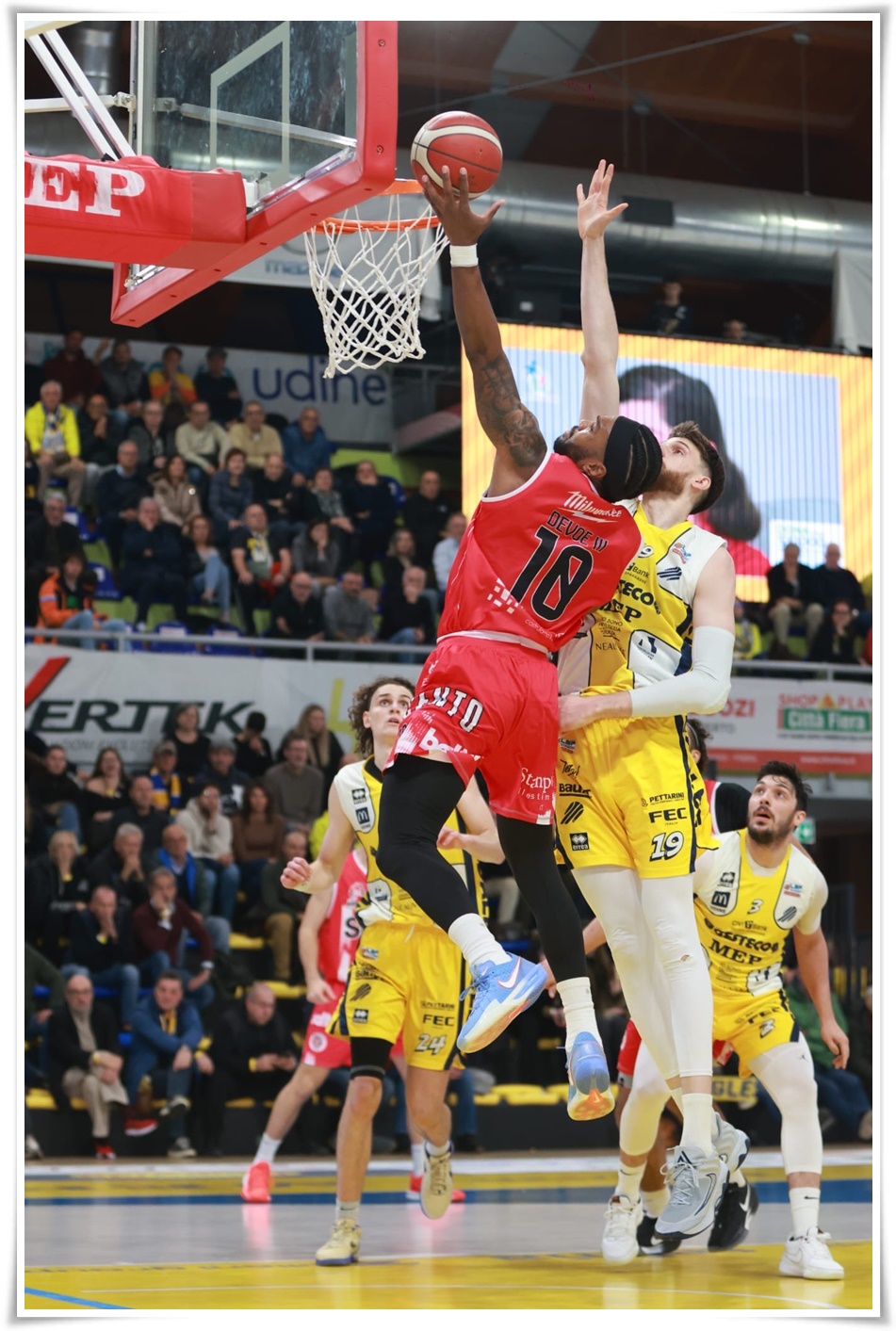 Undicesima giornata di campionato: la Sella Cento esce sconfitta dal PalaGesteco di Cividale al termine di una partita combattuta e intensa, che interrompe la striscia di tre vittorie consecutive. La squadra di coach Di Paolantonio parte con il quintetto formato da Berdini, Devoe, Davis, Fall e Scarponi, mostrando sin dalle prime battute solidità e organizzazione su entrambi i lati del campo.