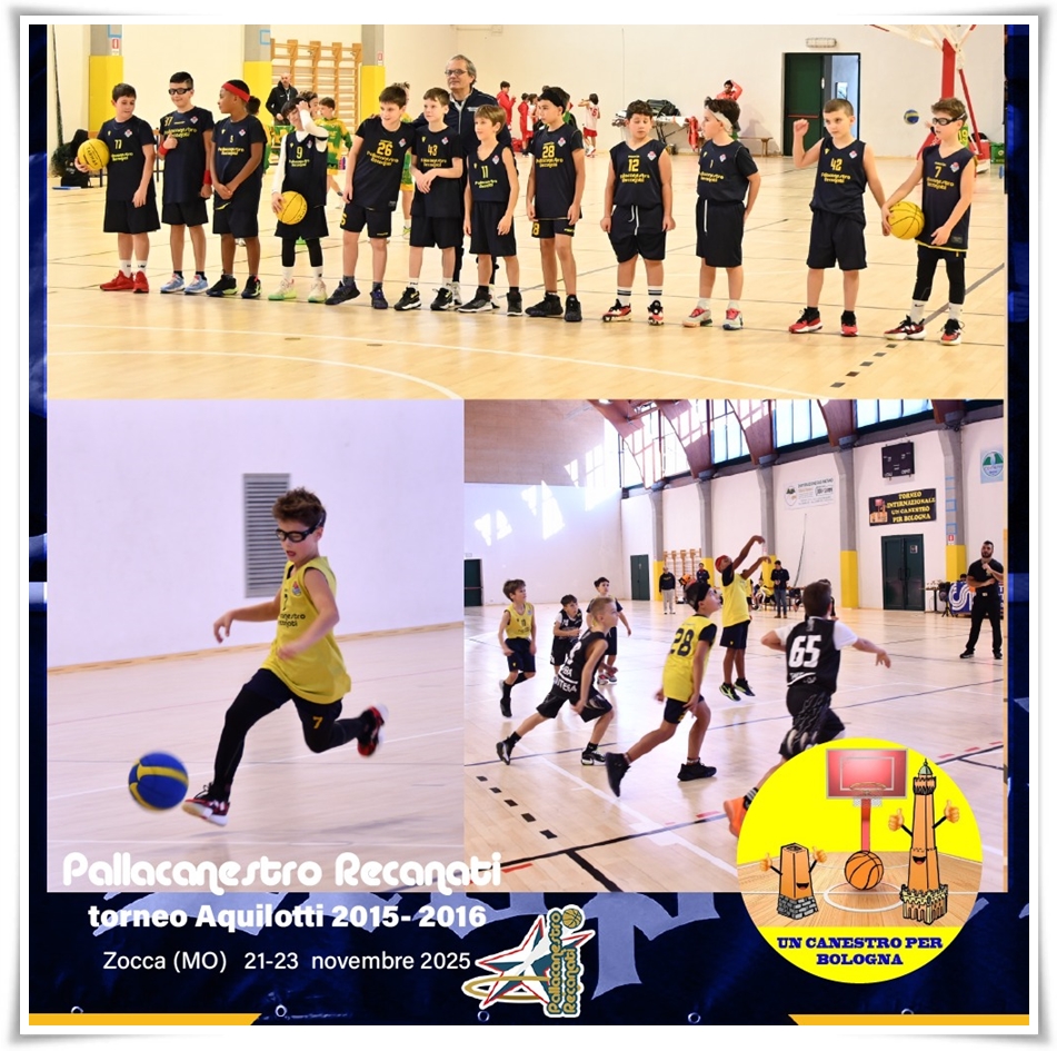 Esperienza indimenticabile per i nostri Aquilotti 2015/2016 che nello scorso weekend hanno partecipato al torneo "Un Canestro per Bologna" disputatosi a Zocca. E poco importa se la classifica finale vede Recanati ottava su otto squadre e se le partite con Junior Basket Ravenna, Castelfiorentino, Costone Siena e Route 64 Bologna sono terminate con delle sconfitte; la vittoria più grande è stata quella di aver portato fuori regione un gruppo di bambini di 9-10 anni che hanno avuto la possibilità di misurarsi con centri mini-basket di un altro livello, con società blasonate ed in una competizione che ha visto partecipare realtà dall'Emilia Romagna, Toscana e Marche. Solo confrontandosi con i migliori si può crescere più in fretta e gli occhi ricolmi di gioia dei nostri bambini ci fanno capire che siamo sulla strada giusta.