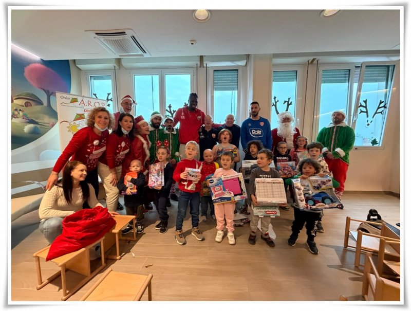 Martedì 16 dicembre una delegazione biancorossa ha fatto visita al reparto di oncoematologia pediatrica dell’Ospedale Infermi di Rimini per consegnare i regali richiesti a Babbo Natale dai bambini ricoverati.