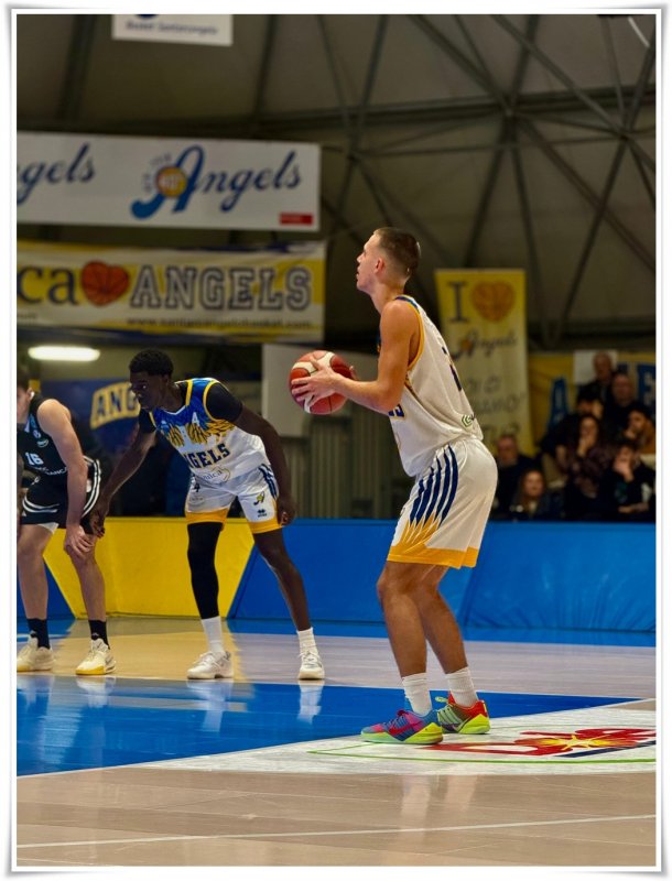 Partita difficile per i gialloblu che perdono contro una solida Virtus Bologna in grado di punire ogni minimo errore dei padroni di casa. Gli ospiti partono forte, impostando subito un'intensità difensiva clamorosa e non concedendo niente di facile agli Angels, con il tabellone che dopo pochi minuti recita 5-22. I ragazzi di casa però non si abbattono e, trascinati anche da una bellissima cornice di pubblico, provano a ricucire il divario tornando a -9, ma sul finale di secondo quarto un altra spallata virtussina sigilla il match sul 28-48 all'intervallo. Nel terzo periodo i Santarcangiolesi provano a riaprire la partita portandosi sul 39-51, con la seguente tripla di Ronci in campo aperto che avrebbe potuto portare i ragazzi allo svantaggio in singola cifra, ma nel quarto periodo sale in cattedra Berlingeri per Bologna che con 8 punti in fila dà il largo definitivo per gli ospiti, i quali possono tranquillamente amministrare fino alla sirena finale. Non riesce quindi l'impresa ai comunque stoici Angels (privi di Frisoni, Della Chiesa e Bracci oltre ai lungodegenti Ricci e Valmaggi) davanti a una fortissima Virtus che sarà tra le favorite per lo Scudetto di categoria. Prossima partita mercoledì 25/02/2026 alle ore 20:45 a Roseto.