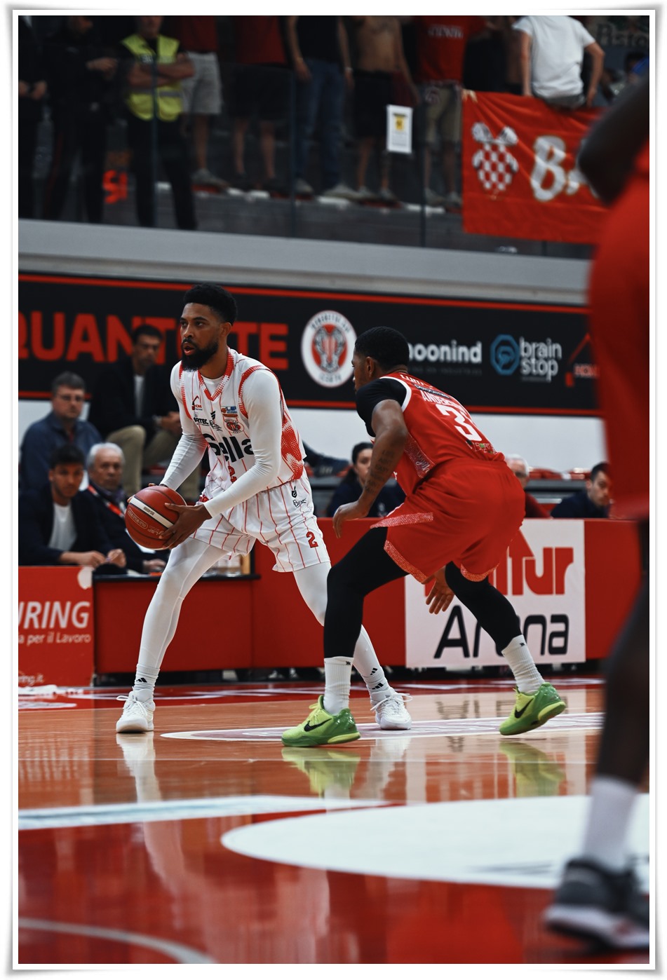 Il secondo quarto cambia l’inerzia del match. Dopo un avvio equilibrato, è ancora Davis a prendersi la scena, firmando i canestri che riportano sotto e poi avanti la Sella. Accanto a lui crescono anche Tiberti e Copeland, sempre più dentro la partita. La Benedetto alza l’intensità difensiva e trova soluzioni efficaci in attacco, arrivando fino al +6 con una tripla dello stesso Davis. Pistoia prova a restare in scia, ma Cento mantiene il controllo e chiude all’intervallo avanti 61-55, al termine di una rimonta concreta e autoritaria.