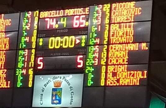 Basket Barcellona: Daniele Grilli 17 (1/1, 3/12), Luigi Brunetti 17 (4/8, 1/3), Yancarlos Rodriguez 16 (4/5, 1/4), Fabio Stefanini 10 (1/2, 2/6), David Paunovic 9 (1/4, 2/5), Michael Teghini 5 (1/1, 1/3), Bogdan Milojevic 0 (0/1, 0/1), Giuseppe Ippedico 0 (0/0, 0/1), Fabio Caldarola 0 (0/0, 0/0), Giuseppe Varotta 0 (0/0, 0/0). All.re Nisic