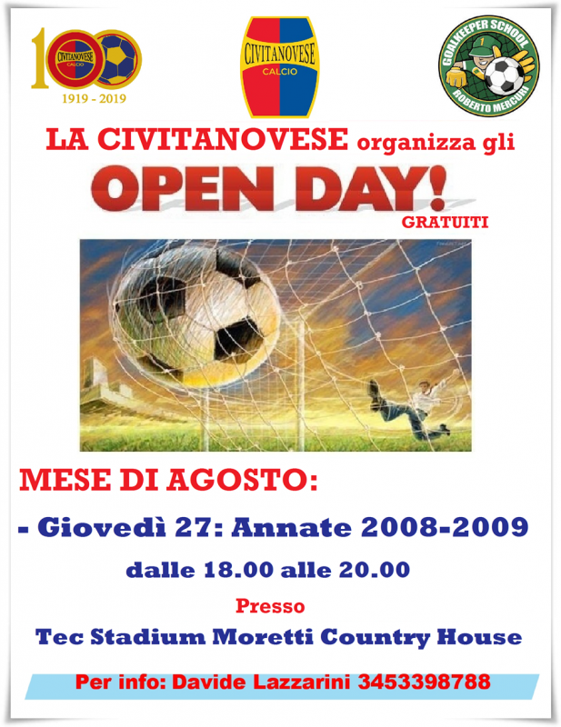 La Civitanovese, visto il successo degli Open Day organizzati in precedenza in questo mese, continua ad organizzare altri Open Day gratuiti per far conoscere la propria attività giovanile e far vedere da vicino le metodologie di lavoro e l'organizzazione del proprio staff tecnico, sempre nel rispetto degli attuali protocolli di sicurezza.