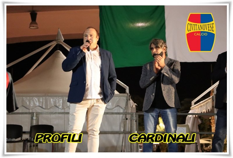 A chiudere la presentazione della prima squadra, reduce dal brillante test pomeridiano in casa del Valdichienti Ponte: il presidente Mauro Profili che ha ricordato la ripartenza della società rossoblu in questi anni, con l'obiettivo di salire di categoria quanto prima e di creare una nuova base dirigenziale forte grazie anche alla presenza di nuove figure e di nuovi sponsor. Sulla stessa falsariga il dirigente Stefano Cardinali mentre il ds Giulio Spadoni si è detto onorato di trovarsi in questa storica piazza. Dopo l'investitura ufficiale di Daniele Maria Angelini, il noto imprenditore civitanovese ricoprirà il ruolo di presidente onorario, hanno sfilato i giocatori della prima squadra con il saluto ai tifosi da parte di mister Massimo Ciocci, del capitano William Bordi, del bomber Gabriele Tittarelli e di Ismael Bangoura. A chiudere l'auspicio per una buona stagione da parte del sindaco della città Fabrizio Ciarapica.