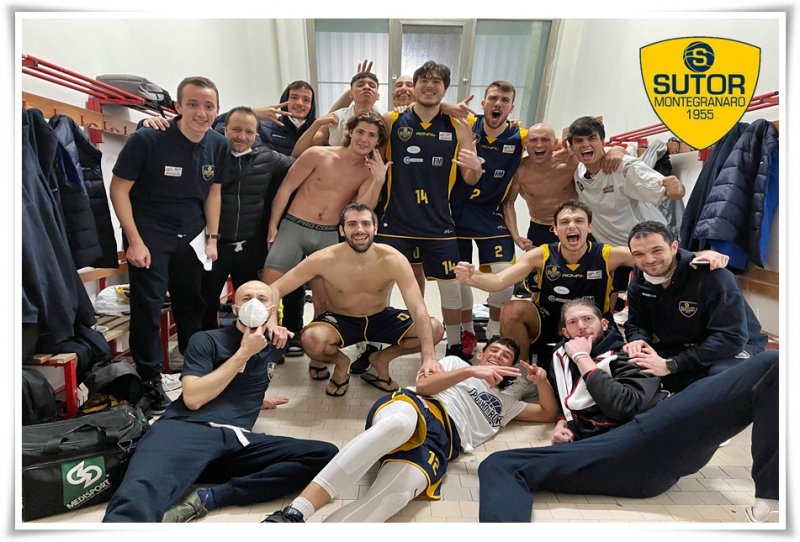 L’ultimo periodo è un condensato di emozioni con Romanò che timbra i primi cinque punti del quarto per il 52-63. Roseto non trova pertugi nell’attenta difesa della Sutor che addirittura con Minoli allunga al nuovo massimo vantaggio, 56-70 al 34’. Roseto si scuote, la Sutor però non molla nulla e a 2’25” dal termine è sempre avanti sul 65-73. Arriva un fallo antisportivo, Lucarelli segna sette punti consecutivi e Roseto si rimette in scia, 70-73 a 1’43” dalla sirena. Amoroso da sotto porta gli abruzzesi al meno 1, 72-73 a 1’05” dal termine con un parziale aperto dei padroni di casa di 11-0. Ci pensa Gallizzi con una bella entrata e riportare a più 3 la Sutor, 72-75, Amoroso dalla lunetta rimette in scia Roseto, 74-75 a 33” dal termine. Ci pensa ancora Gallizzi a realizzare un canestro di ottima fattura a 13” dal termine, quello del più 3, 74-77. Nell’ultimo attacco Roseto non trova la via del canestro con Montegranaro che prima chiude bene le linee difensive e poi recupera anche il pallone. I gialloblù vincono per 77-74, un successo festeggiato prima in campo e poi negli spogliatoi da un gruppo di ragazzi davvero straordinari che sono riusciti a regalarsi la prima gioia stagionale.