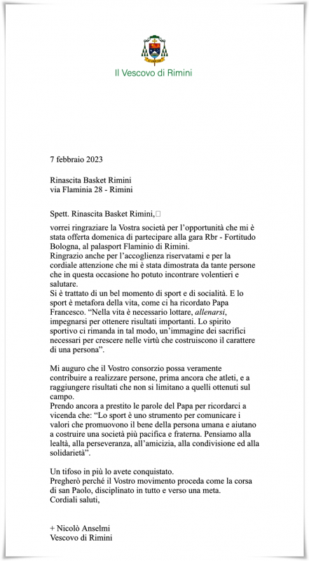 Ieri mattina abbiamo ricevuto una lettera che ci ha fatto enormemente piacere. La lettera è stata inviata da Nicolò Anselmi Vescovo di Rimini e recita questo:
